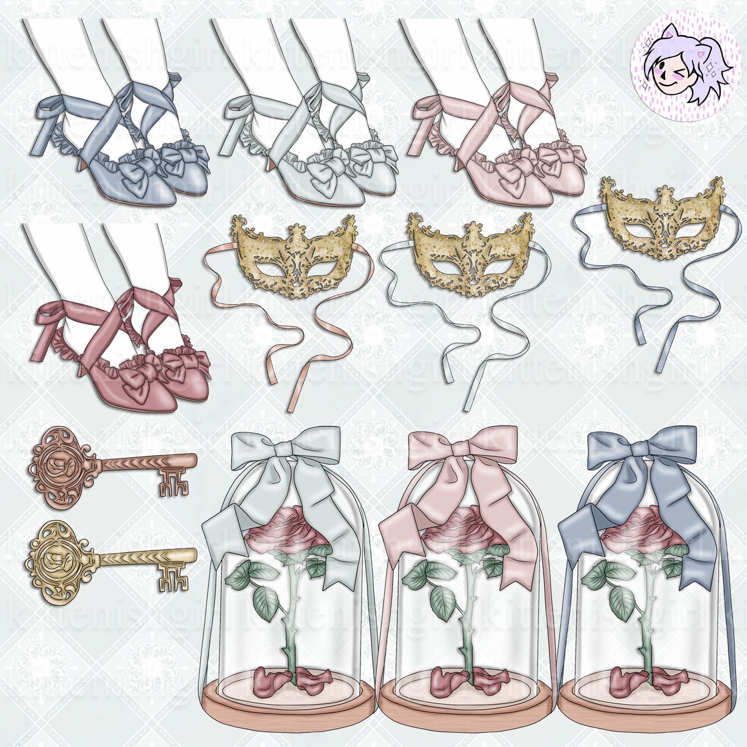 Claiming the work of Kittenishgirl as your own is prohibited. You may not resell or redistribute designs in their original digital format. Copyright does not transfer with sale. All copyrights and ownership of images and designs remains with Kittenishgirl at all times.