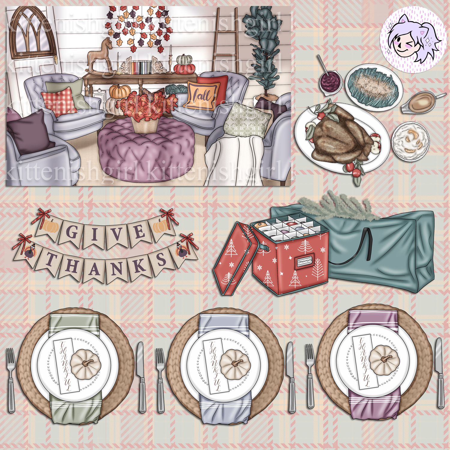 Perfect for anytime in Autumn this collection is about being cosy and baking. Some additional pieces can turn it into a subtle Thanksgiving Day project although it doesn't have to be that at all.