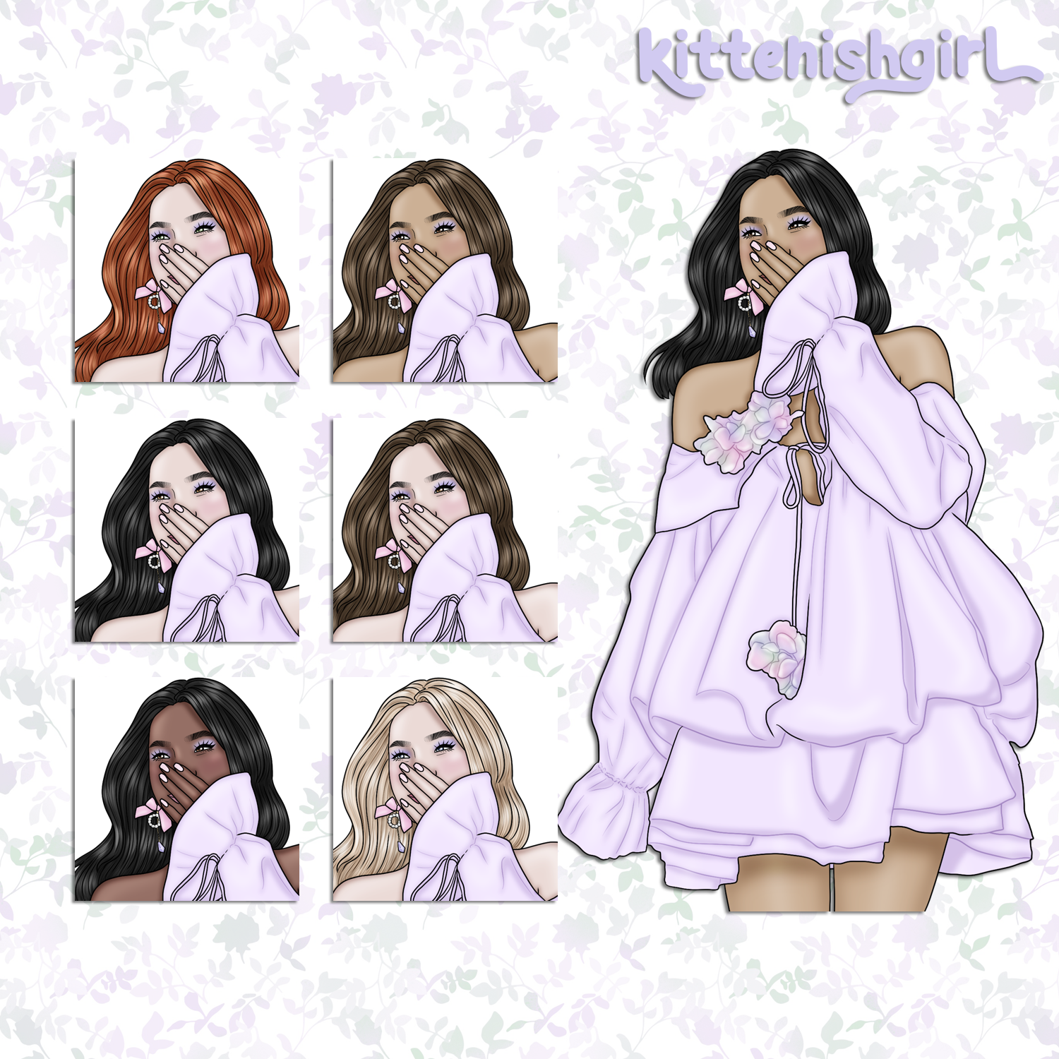 Claiming the work of Kittenishgirl as your own is prohibited. You may not resell or redistribute designs in their original digital format. Copyright does not transfer with sale. All copyrights and ownership of images and designs remains with Kittenishgirl at all times.