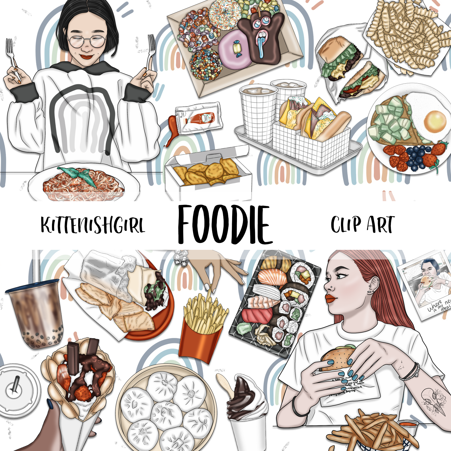 Foodie celebrates all things takeout, delivery and FOOD! I have tried to draw the food as close to real life as possible which makes selecting colourways hard. Because of this, I have given some colourful and neutral options in case you want to embrace the retro rainbow or dial it back with some greys to highlight the food instead! Have a look at the digital papers in order to do this further.