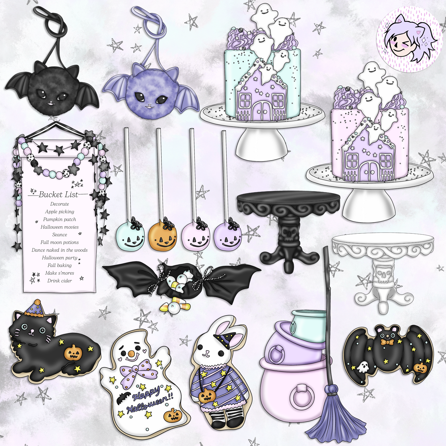 Kawaii witches and demons live in this little neighbourhood. Will you dare to venture there for trick or treat?
