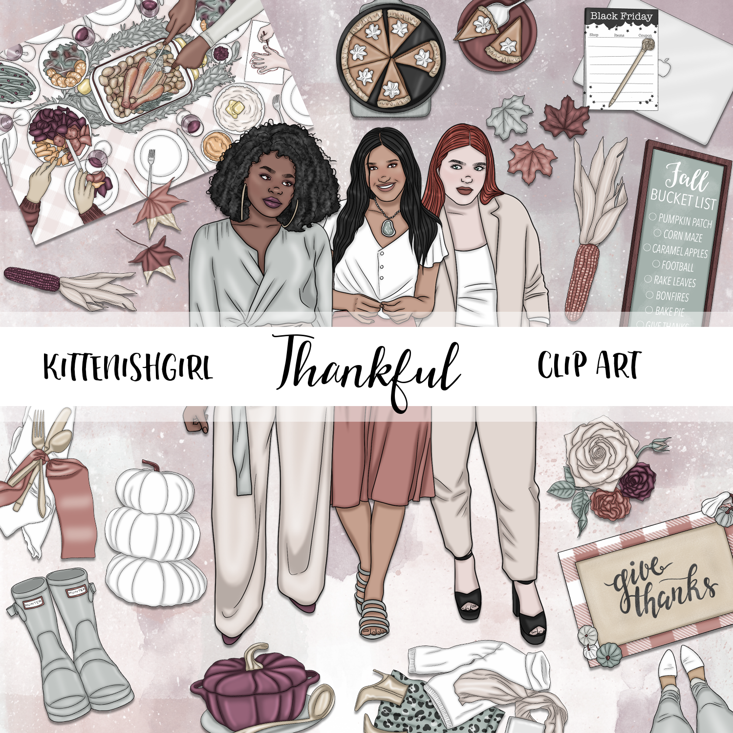 A simple Thanksgiving set with a diverse range of fashion girls.