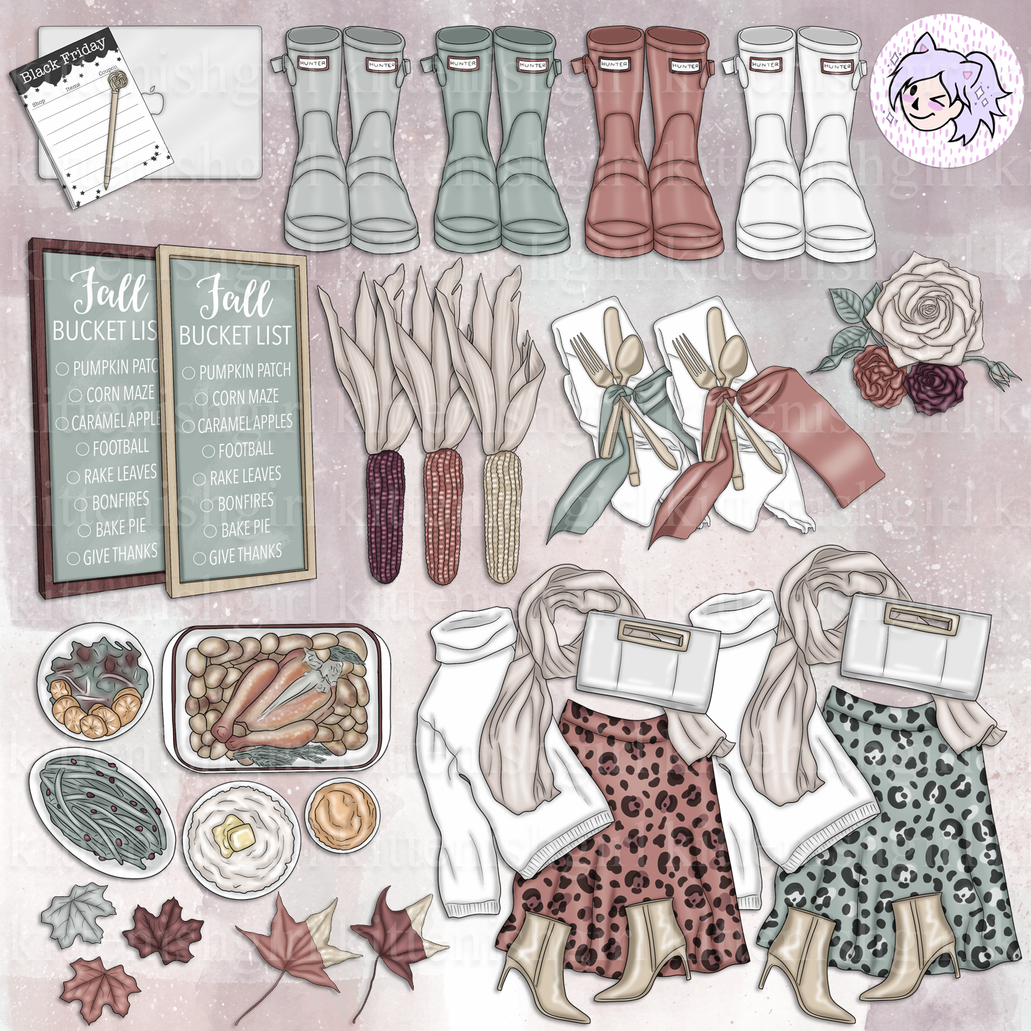 Claiming the work of Kittenishgirl as your own is prohibited. You may not resell or redistribute designs in their original digital format. Copyright does not transfer with sale. All copyrights and ownership of images and designs remains with Kittenishgirl at all times.